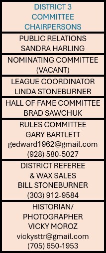 (L-R) Dale Crouch President, Alan Williamson VP, Lynn Freeman Secretary, Donna Crouch Treasurer, Brad Sawchuck Exec Director, Doug Sawchuk Director, Linda Stoneburner League Coordinator, Gary Bartlett Rules Committee, Bill Stoneburner District Referee, Vicky Moroz Historian & Photographer Missing from Photo